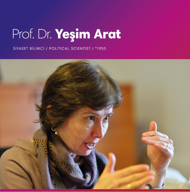 Yeşim Arat, Boğaziçi Üniversitesi Siyaset Bilimi öğretim üyesi. Türkiye’de siyasal yaşam, kadın ve toplumsal cinsiyet eşitliği, kadına yönelik şiddet konularında çok sayıda ulusal ve uluslararası yayını bulunmaktadır. Arat, Journal of Middle East Women’s Studies, Journal of Women’s History gibi uluslararası dergilerde yayın kurulu üyeliği yaptı. Kadın Eserleri Kütüphanesi ve Kadın Adayları Destekleme Derneği genel kurul üyesidir. 2012 yılında Bilim Akademisi üyeliğine seçildi.