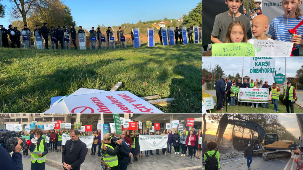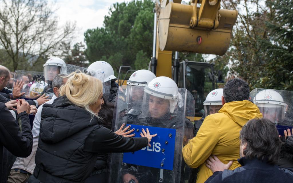 Özyazıcı ve Cevahir İnşaat şirketleri polis kalkanları ile yeşil alanlarımızı, göletlerimiz su kanallarımıza ÇED raporu olmadan, çevre etütleri yapılmadan, herhangi bir ruhsat bile olmadan işgal ettiler.