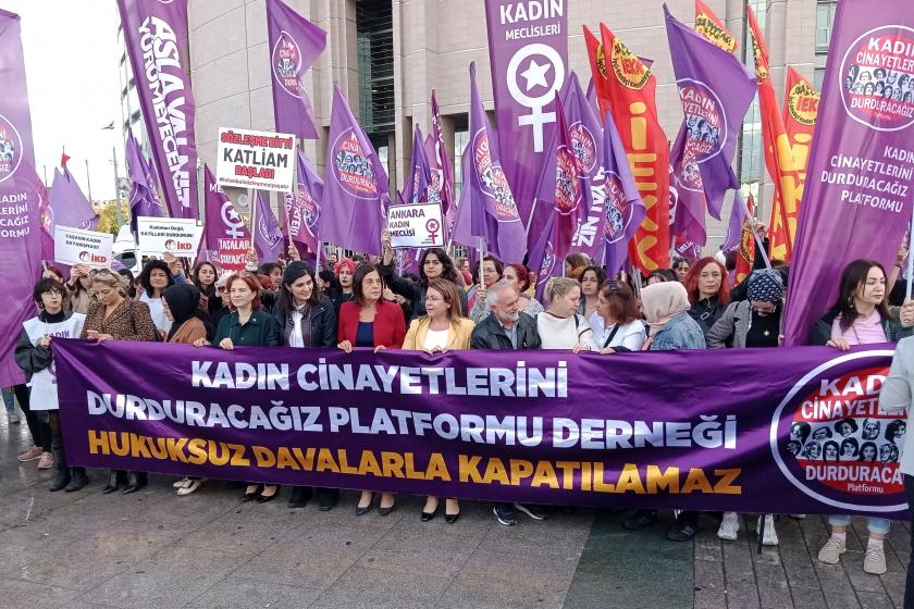 Kadın Cinayetlerini Durduracağız Platformu Derneği’ne ‘kanuna ve ahlaka aykırı faaliyet yürütme’ iddiasıyla açılan kapatma davasının 2. duruşması bugün Çağlayan’daki İstanbul 13. Asliye Hukuk’ta görülmeye başlandı. Avukatların savunmalarının ardından duruşma, 11 Ocak 2023 saat 11.00’e ertelendi.