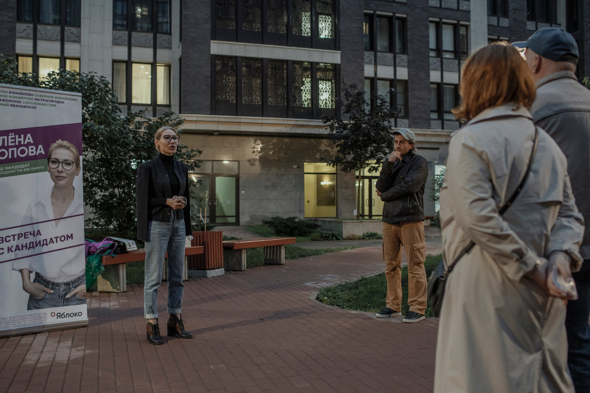 Popova, Moskova’nın doğu eteklerinde bir işçi sınıfı mahallesi olan 205. seçim bölgesinde, son yıllarda kadın haklarının gerilemesine neden olan Vladimir Putin’in iktidar partisi Birleşik Rusya’ya karşı oy kullanmaya çağırdı. Kampanya, tüm aile içi şiddet olaylarının suç sayılmasına yönelik bir yasa tasarısı da içeriyordu.