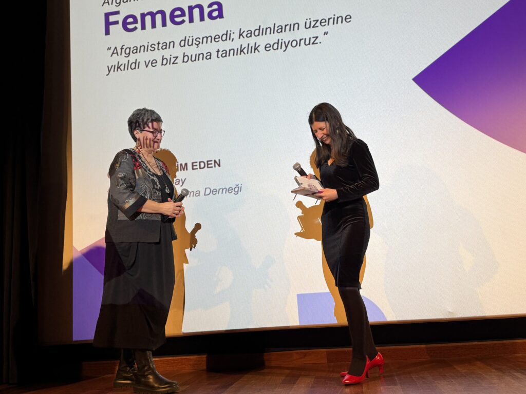Afganistan başta olmak üzere Ortadoğu ve Asya’da kadın insan hakları savunucularını destekleyen FEMENA’ya verilen ödülü Afganistan’ın ödüllü insan hakları savunucusu Sharazad Akbar aldı. Akbar konuşmasında, Taliban’ın bugüne kadar kadınların yaşamını kısıtlayan 135 ferman çıkardığı söyledi ve “Bu rejim çalışmamızı, öğrenmemizi, hatta daha iyi bir gelecek hayal etmemizi dahi engelliyor” dedi. Kadınların Afganistan’da şiir okuyarak direnişlerine destek olarak Mariam Meetra’nın Yüzsüz (Bi-Çehre) şiirini okudu.