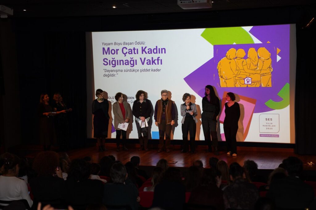 feminist yöntemlerle mücadeleyi başarmış olması, dayanışma merkezleri ve sığınaklarda hukuki, sosyal ve psikolojik destek sağlayarak kadınları güçlendirici çalışmalar yapması ve şiddetle mücadele etmek ve toplumsal cinsiyet eşitliğini sağlamak adına politika önerileri geliştirmesinden doları SES Yaşam Boyu Başarı Ödülü Mor Çatı Kadın Sığınağı Vakfı’na verildi. Ödülü Alan Filiz Kerestecioğlu “Seksenlerin sonunda bir avuç kadın olarak yola çıkmıştık şimdi milyonlara ulaştık. Bu ödülü sadece Mor Çatı adına değil Mor Çatı’dan yolu geçmiş bütün kadınlar adına alıyoruz” dedi.