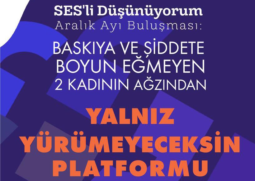SES Eşitlik ve Dayanışma Derneği’nin “birikimlerimizi paylaşmak, birbirimizden öğrenmek, birlikte üretmek” amacıyla aylık olarak düzenlediği konuşmalar dizisi SES’li Düşünüyorum’un Aralık ayı buluşmasının konuğu, ‘Yalnız Yürümeyeceksin Platformu’ oldu.